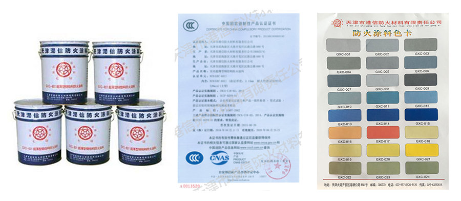 室內膨脹型鋼結構防火涂料由丙烯酸乳液及N-P-C阻燃劑體系原料及顏填料、助劑組成?;蠟樗匀橐?,無毒無害,該涂料涂層遇火迅速變軟,繼而發(fā)泡膨脹形成致密的隔熱層,以阻止火勢蔓延及輻射熱量,從而提高鋼結構的耐火極限。經測試涂料的耐火等級為Fp1.00、Fp1.50、Fp1.00,型號為GT-NSP-Fp1.00-GXC601、GT-NSP-Fp1.50-GXC601、GT-NSP-Fp2.00-GXC601,根據涂刷厚度的不同以對應不同極限的驗收規(guī)則。