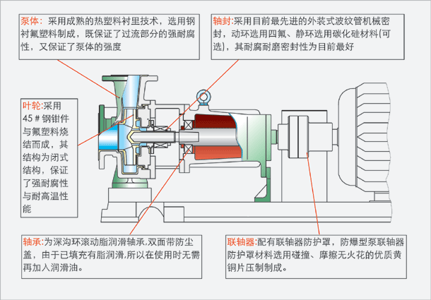 離心泵實(shí)際使用顯示,具有耐腐、耐磨、耐高溫、不老化、機(jī)械強(qiáng)度高、運(yùn)轉(zhuǎn)平穩(wěn)、結(jié)構(gòu)先進(jìn)合理、密封性能嚴(yán)格可靠、拆卸檢修方便、使用壽命長(zhǎng)等優(yōu)點(diǎn)。
