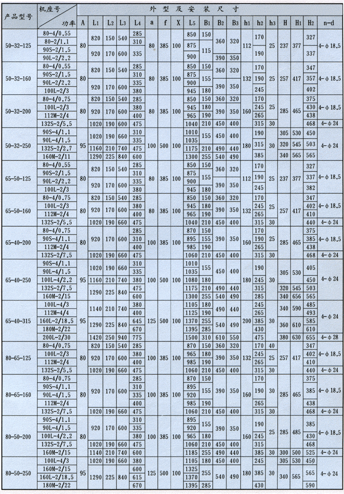 泵轉(zhuǎn)速分為2900和1450轉(zhuǎn)/分兩種。